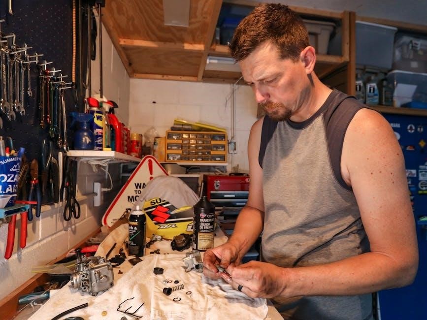 Detailed wiring diagrams within the manual are invaluable for tracing circuits and identifying potential shorts or open connections. Proper use of a multimeter, guided by the manual’s instructions, is crucial for accurate testing. Always disconnect the battery before performing any electrical work to prevent accidental shorts and potential injury.