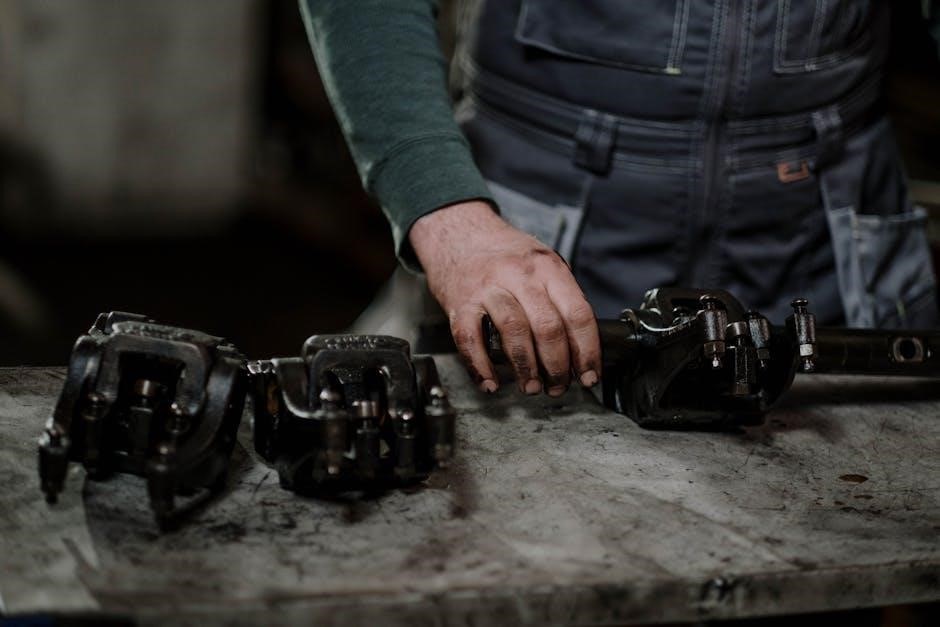 Troubleshooting hydraulic issues often involves checking fluid levels, inspecting filters, and testing valve operation. Common problems include pump failure, cylinder leaks, and clogged filters. The manual’s diagnostic guides assist in pinpointing the root cause, ensuring efficient repairs and minimizing downtime.
